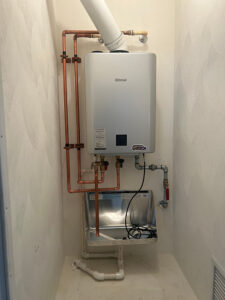 We arrived on site and the customer was interested in replacing their tank style water heater with a new tankless water heater. We discussed options with the customer and they decided to go with installing a tankless water heater. We acquired the needed equipment and returned to install a new Rinnai RXP199iN tankless water heater. We hauled the old tank style water heater away for recycling. We started up the new tankless and checked for a proper operation.the customer was pleased to have a never ending supply of hot water as well as the space savings of having a smaller unit in their closet.